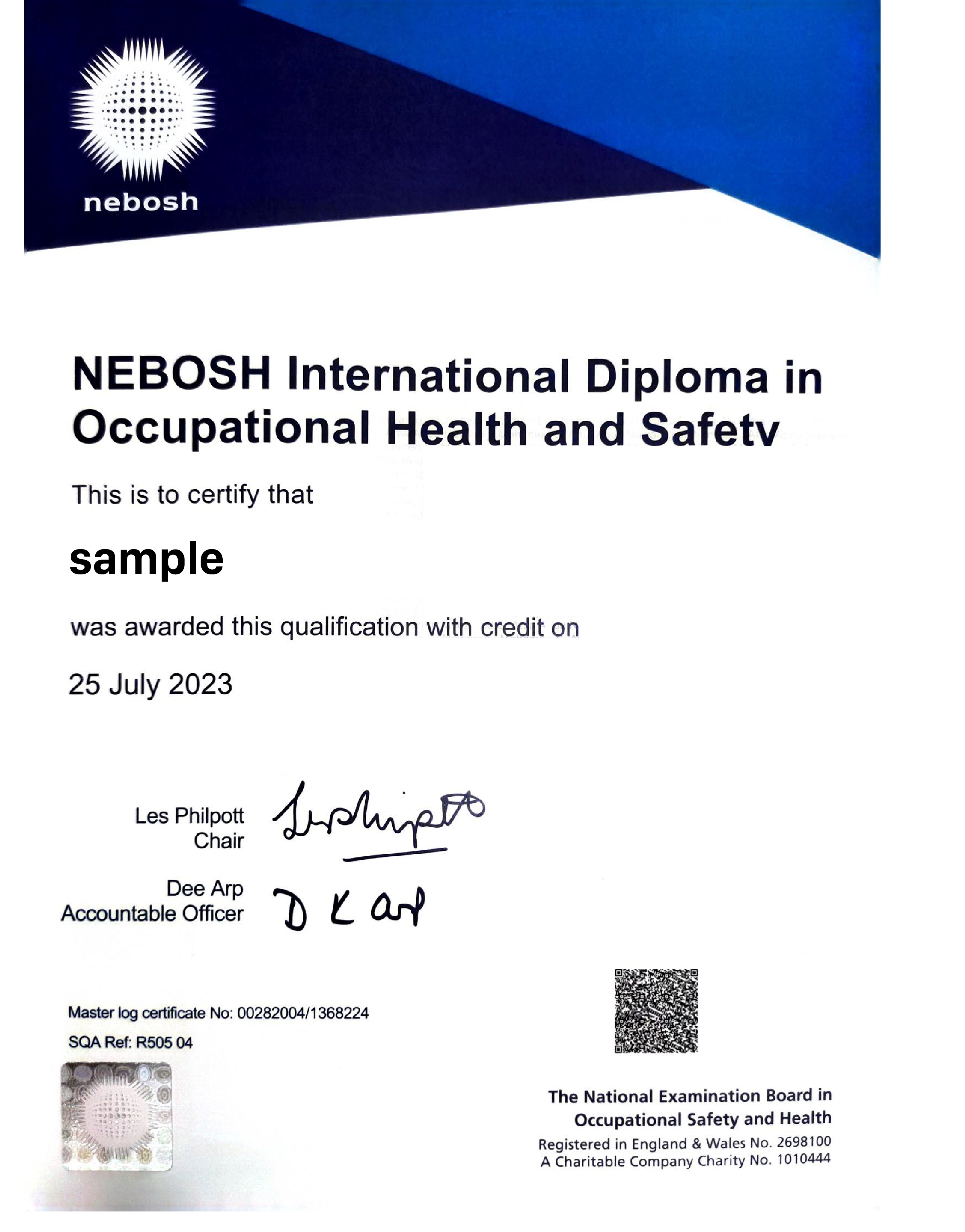 🔹 Chứng chỉ NEBOSH Level 6 Diploma do NEBOSH – UK cấp, giá trị toàn cầu.